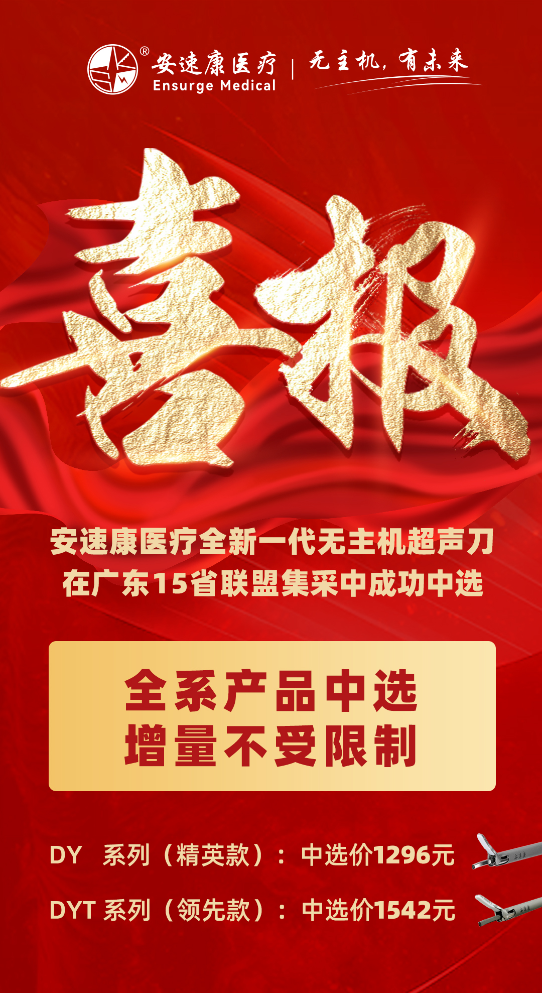 【喜报】安速康医疗全新一代无主机超声刀在广东15省联盟集采中成功中选并获得分配量资格