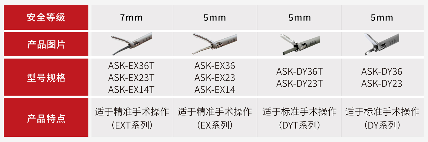 具备不同规格长度的刀头,满足临床不同手术的需求。